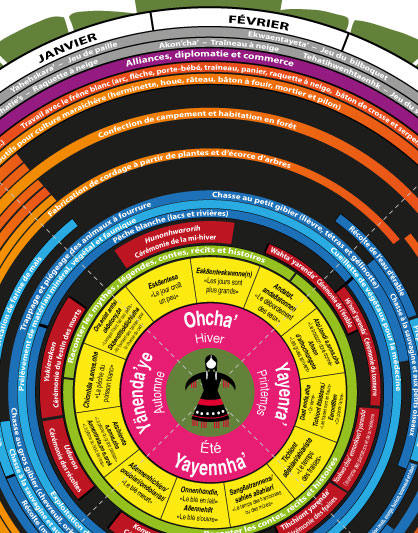 Ce guide référentiel vous présentera d’un seul coup d’œil les pratiques coutumières wendat en fonction du temps. Il répond à la question quoi ? et quand? Ce qui veut qu’il présente un élément de la culture wendat en définissant le moment où il a lieu. Il a été conçu à partir des connaissances actuelles. Des ajouts et/ou modifications pourront y être apportées.